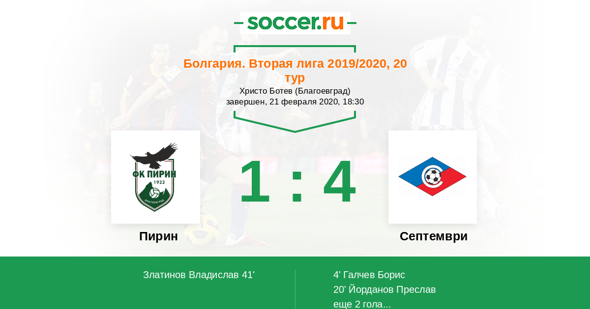 Протокол матча Пирин против Септември