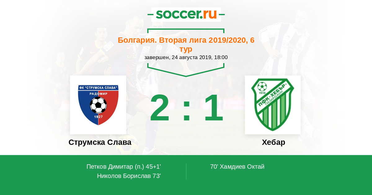 Протокол матча Струмска Слава против Хебар