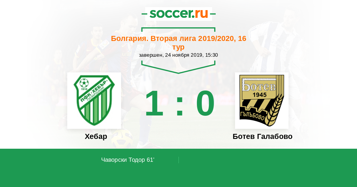 Протокол матча Хебар против Ботев Галабово