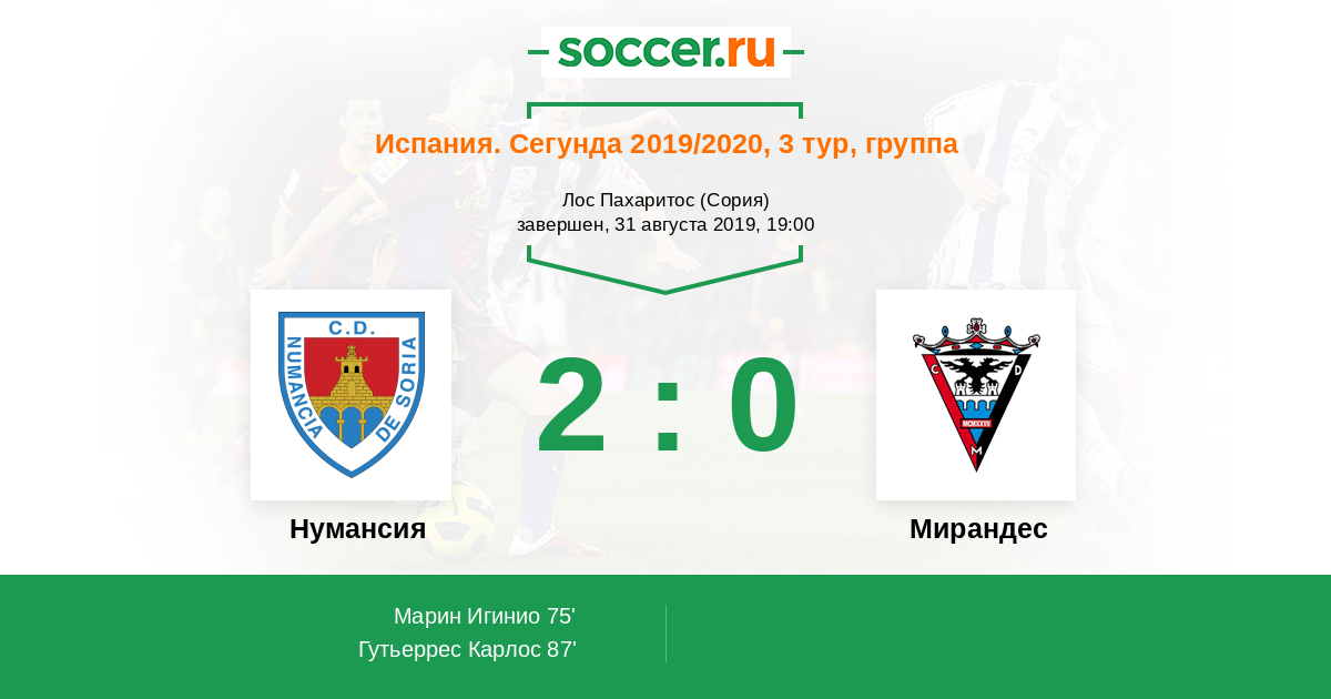 Протокол матча Нумансия против Мирандес
