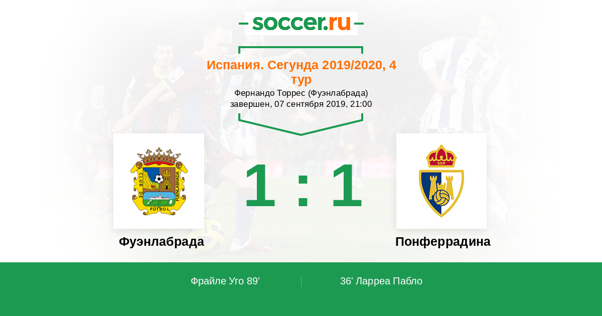 36' (0:1) Ларреа Пабло (8) (Сон (2))