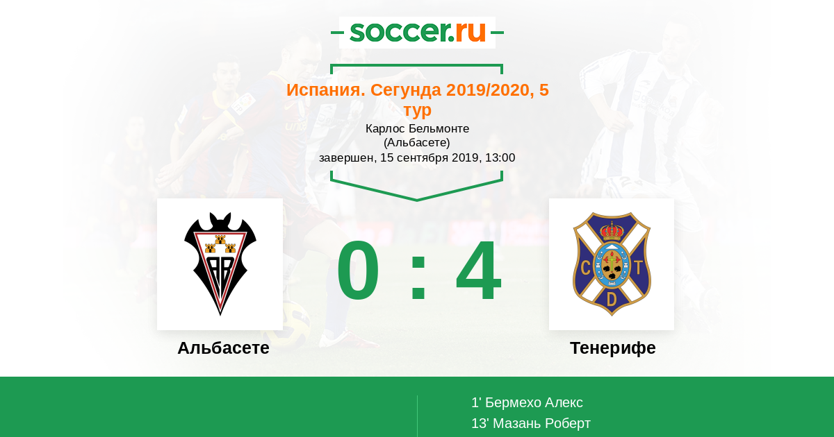 Протокол матча Альбасете против Тенерифе