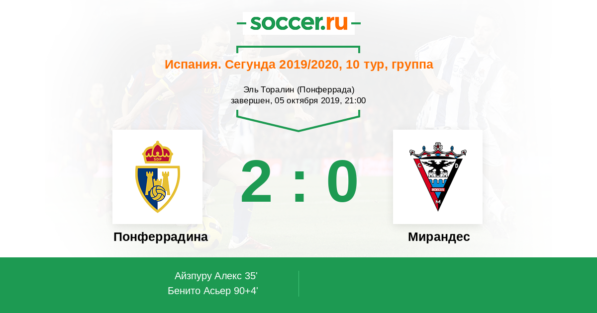 Протокол матча Понферрадина против Мирандес
