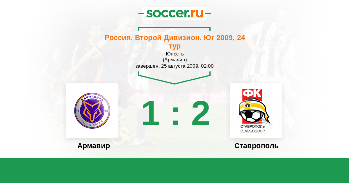 Россия. Вторая лига. Группа 1 07.05.2009 Ставрополь Логотип футбольный клуб Ставрополь 1:0 Логотип футбольный клуб Торпедо Армавир Торпедо Армавир