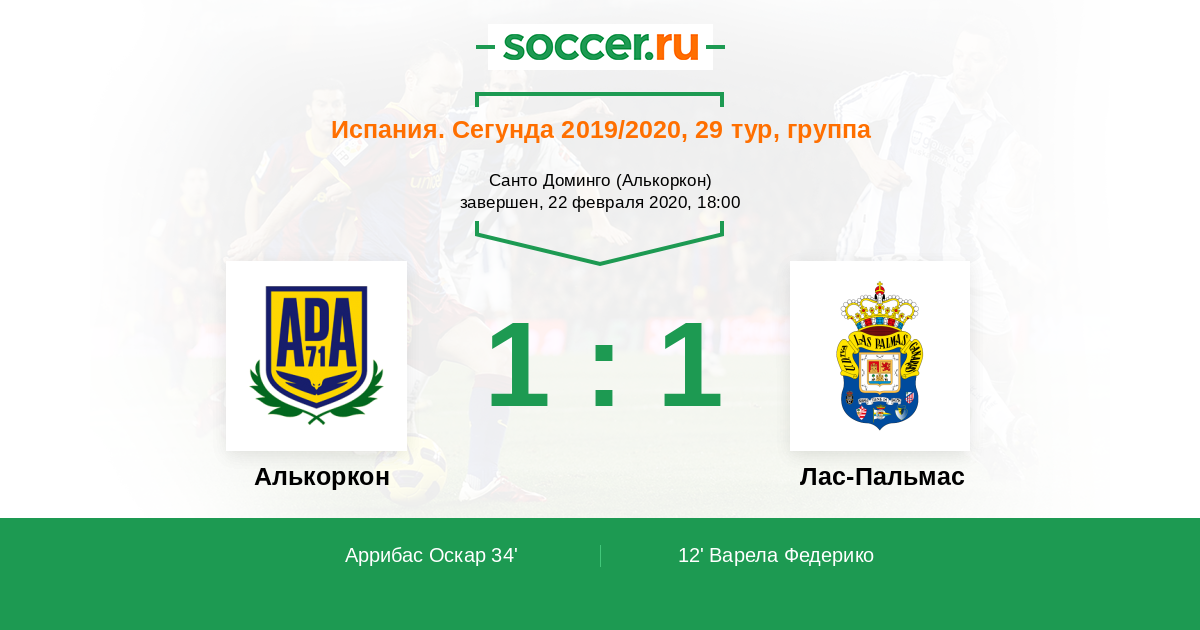 34' (1:1) Аррибас Оскар (26) (Дани Ромера (14))