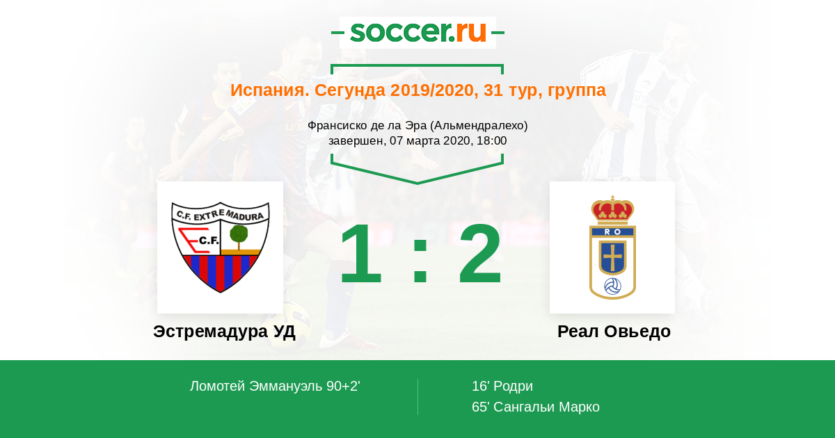 Протокол матча Эстремадура УД против Реал Овьедо