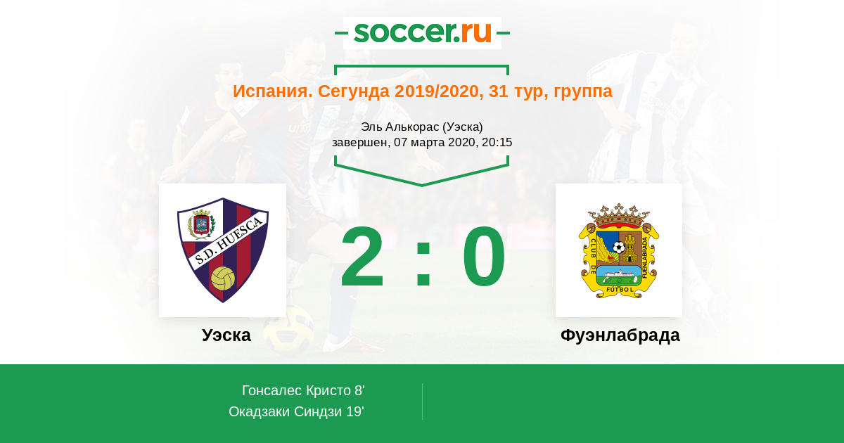 Протокол матча Уэска против Фуэнлабрада