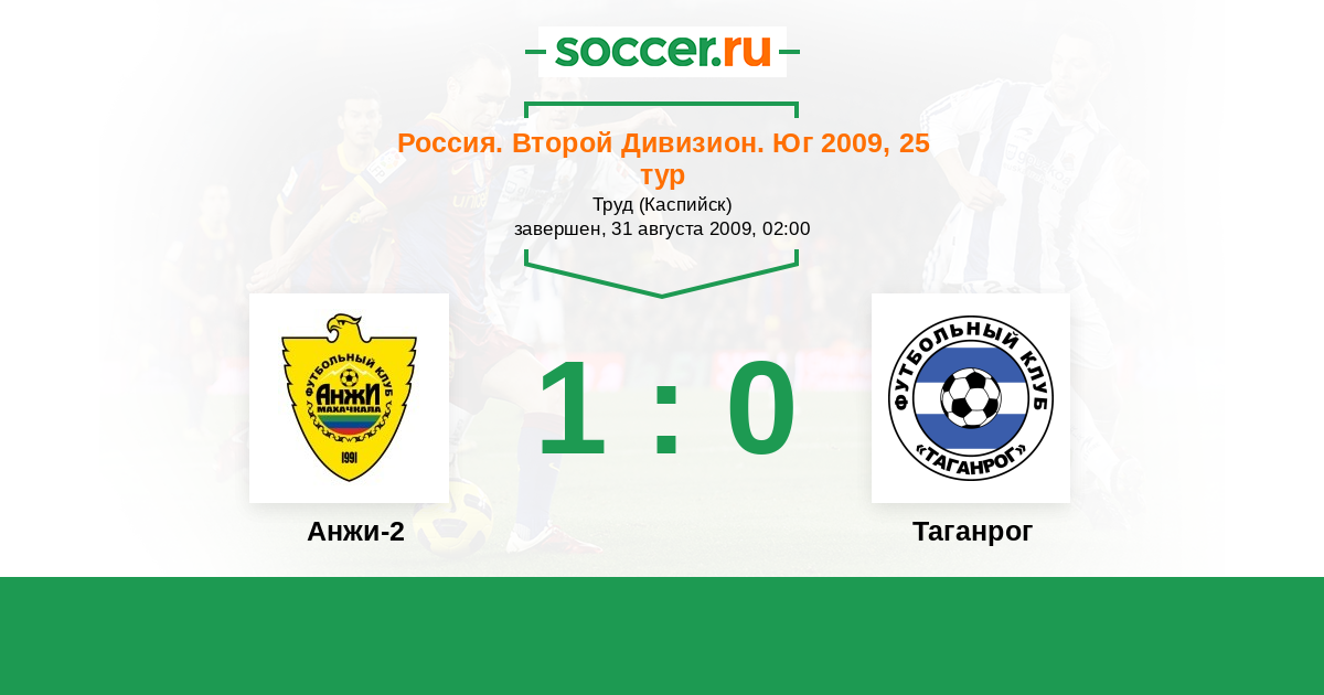 Россия. Вторая лига. Группа 1 01.10.2014 Анжи-2 Логотип футбольный клуб Анжи-2 (Махачкала) 1:0 Логотип футбольный клуб Таганрог Таганрог