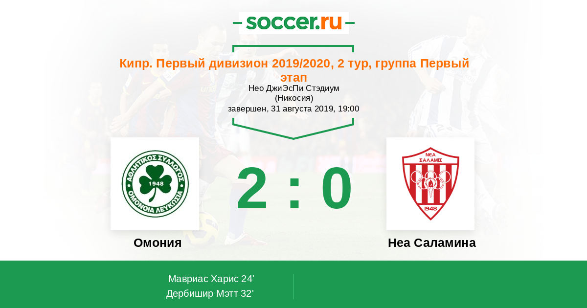 Протокол матча Омония против Неа Саламина