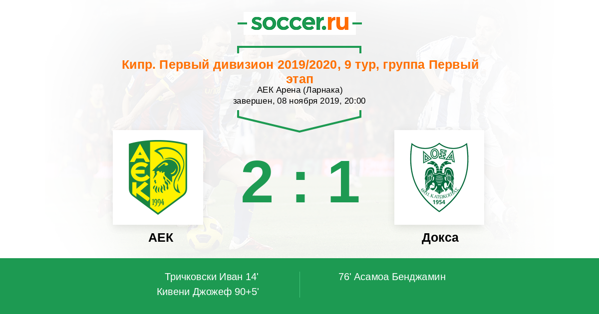 Протокол матча АЕК против Докса