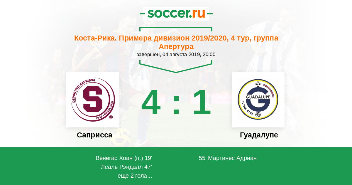 Протокол матча Саприсса против Гуадалупе