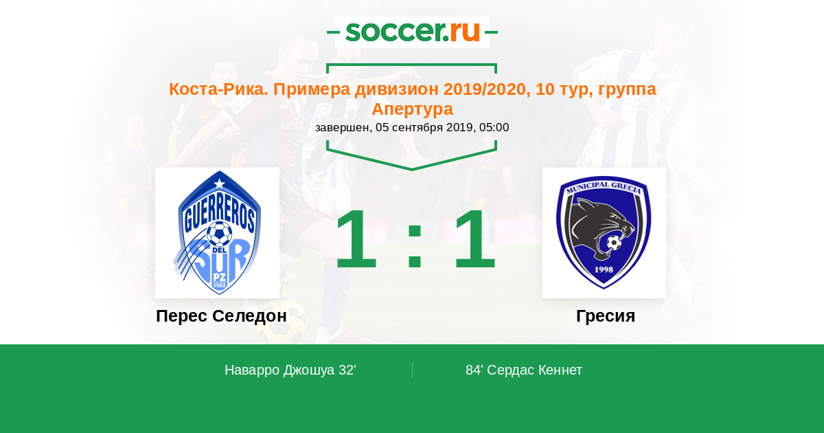 Протокол матча Зеледон против Гресия