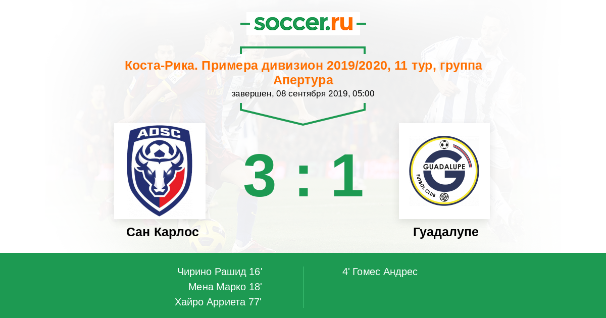 Протокол матча Сан Карлос против Гуадалупе