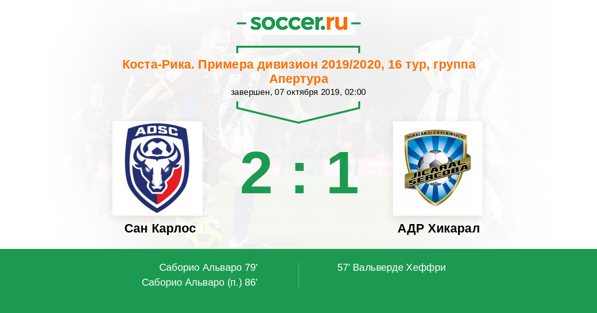 Протокол матча Сан Карлос против АДР Хикарал