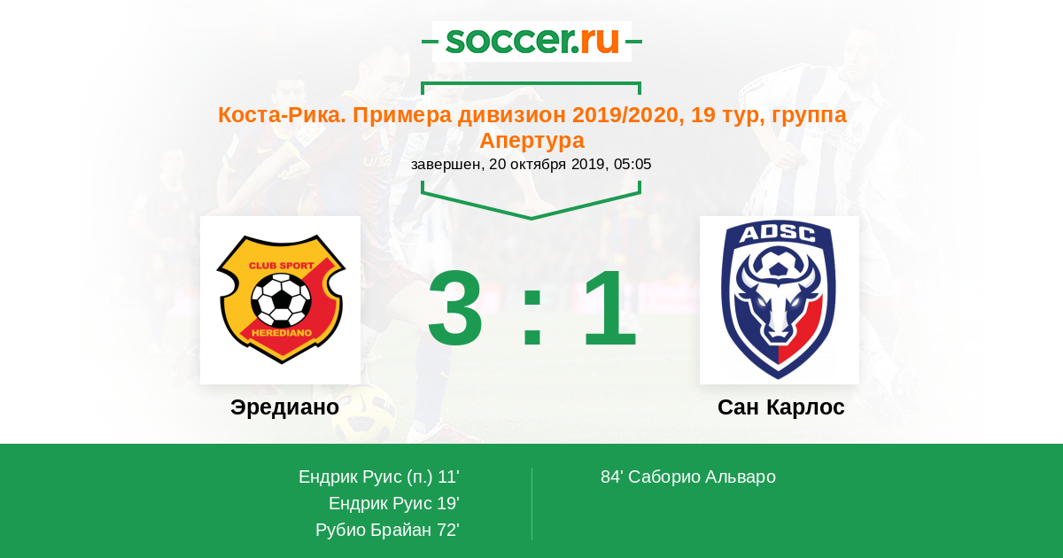 Протокол матча Эредиано против Сан Карлос