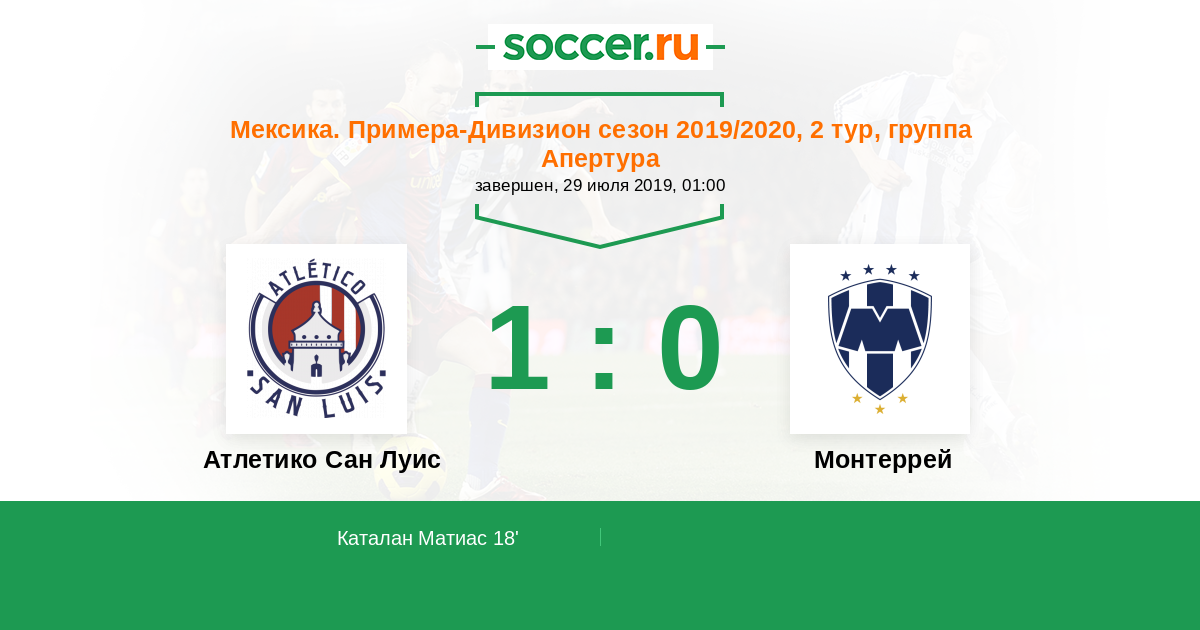 Протокол матча Атлетико Сан Луис против Монтеррей