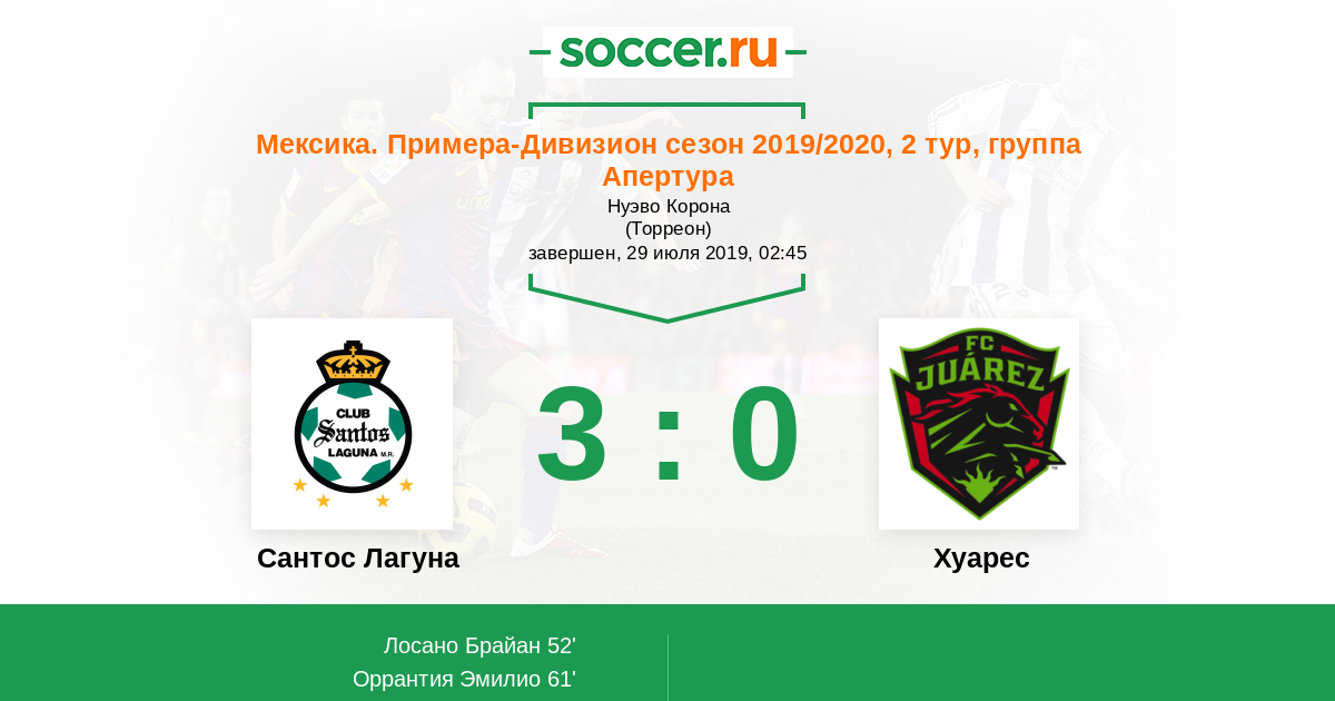 Протокол матча Сантос Лагуна против Хуарес