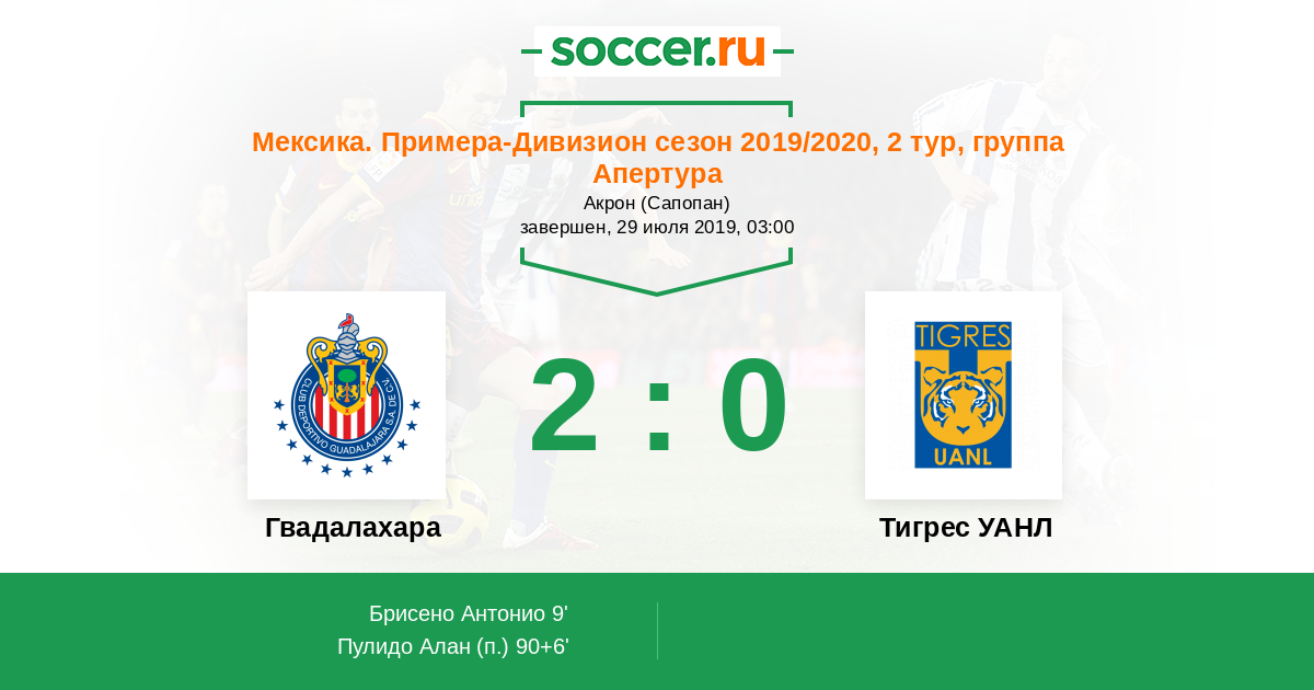 Протокол матча Гвадалахара против Тигрес УАНЛ