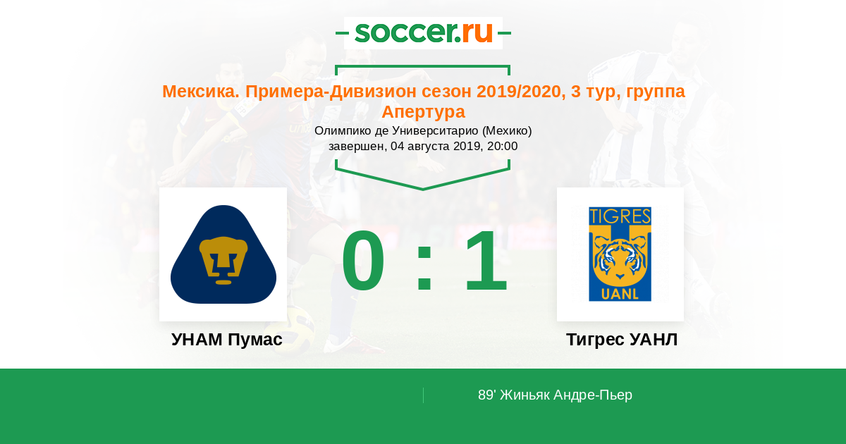 Протокол матча УНАМ Пумас против Тигрес УАНЛ