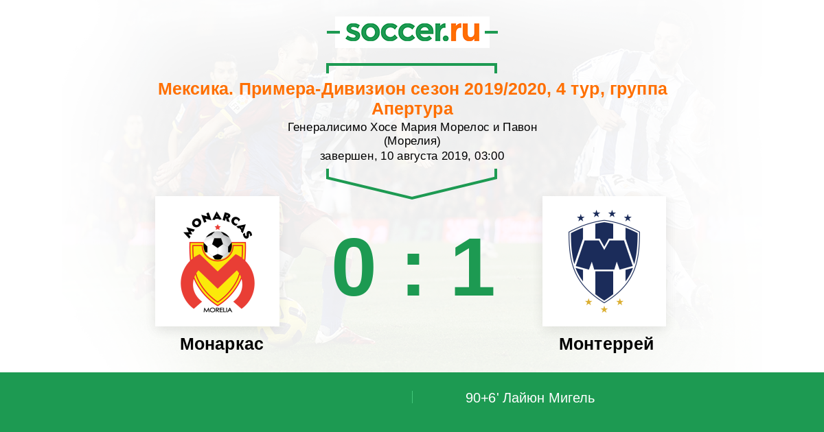Протокол матча Монаркас против Монтеррей