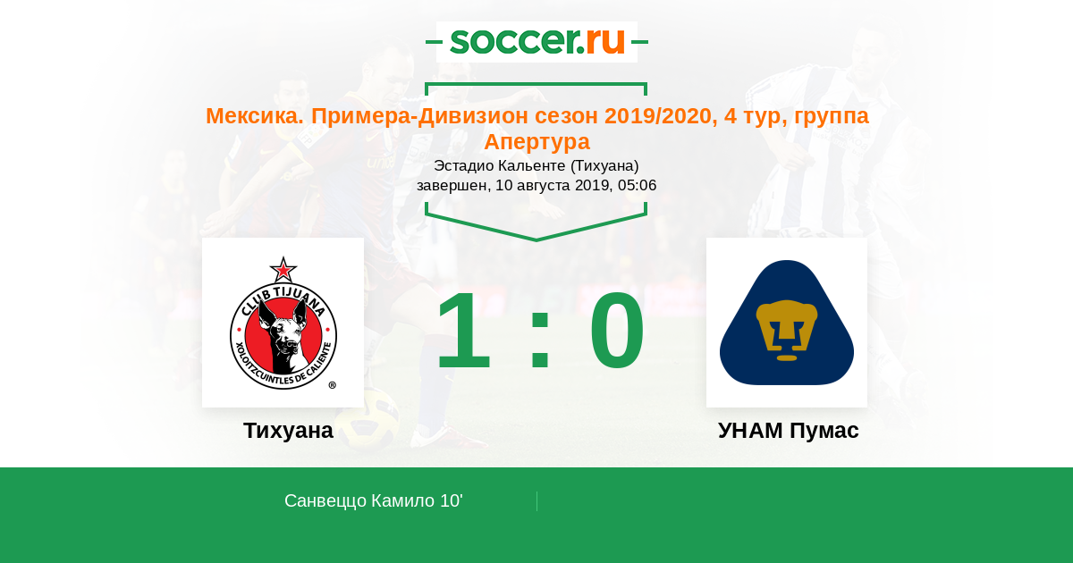 10' (1:0) Санвеццо Камило (7) (Боланьос Милер (10))