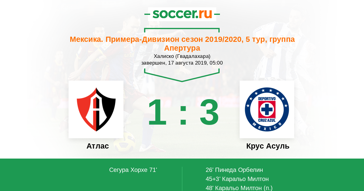 Протокол матча Атлас против Крус Асуль