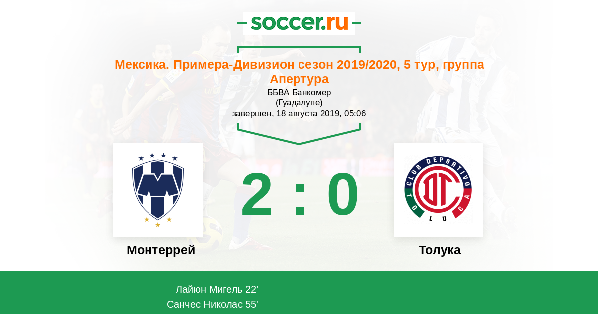 55' (2:0) Санчес Николас (4) (Лайюн Мигель (19))