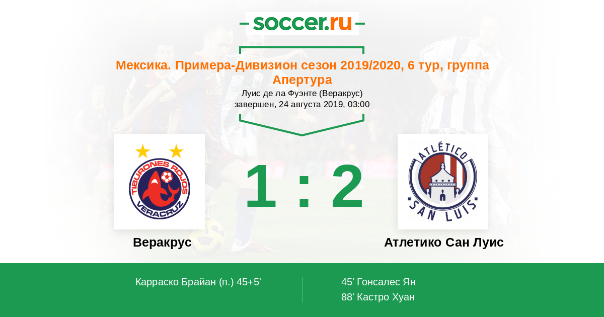Протокол матча Веракрус против Атлетико Сан Луис