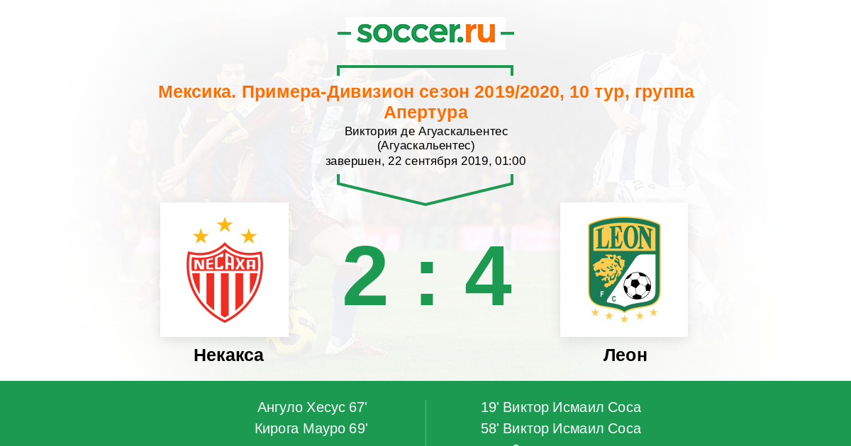 Протокол матча Некакса против Леон