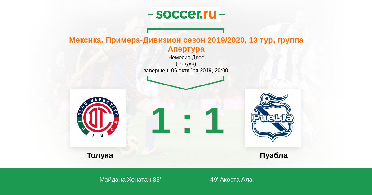 Протокол матча Толука против Пуэбла