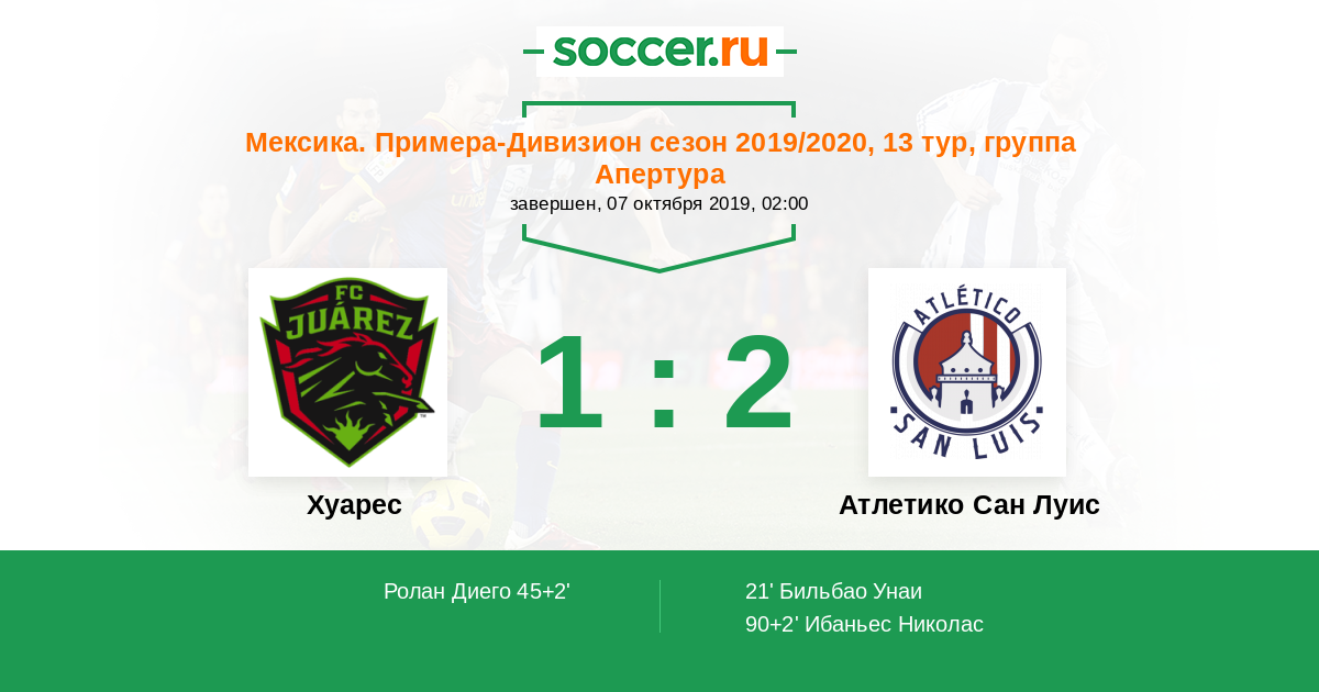 Протокол матча Хуарес против Атлетико Сан Луис