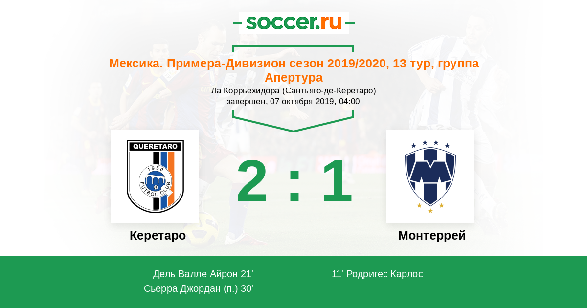 Протокол матча Керетаро против Монтеррей