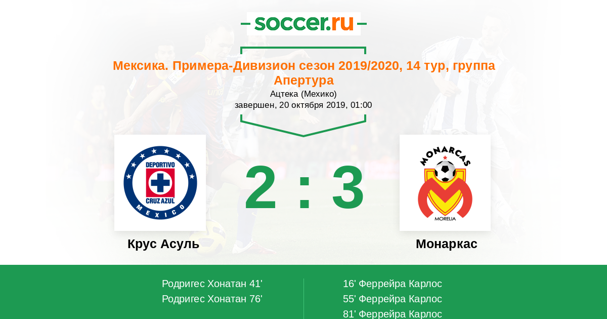 Протокол матча Крус Асуль против Монаркас