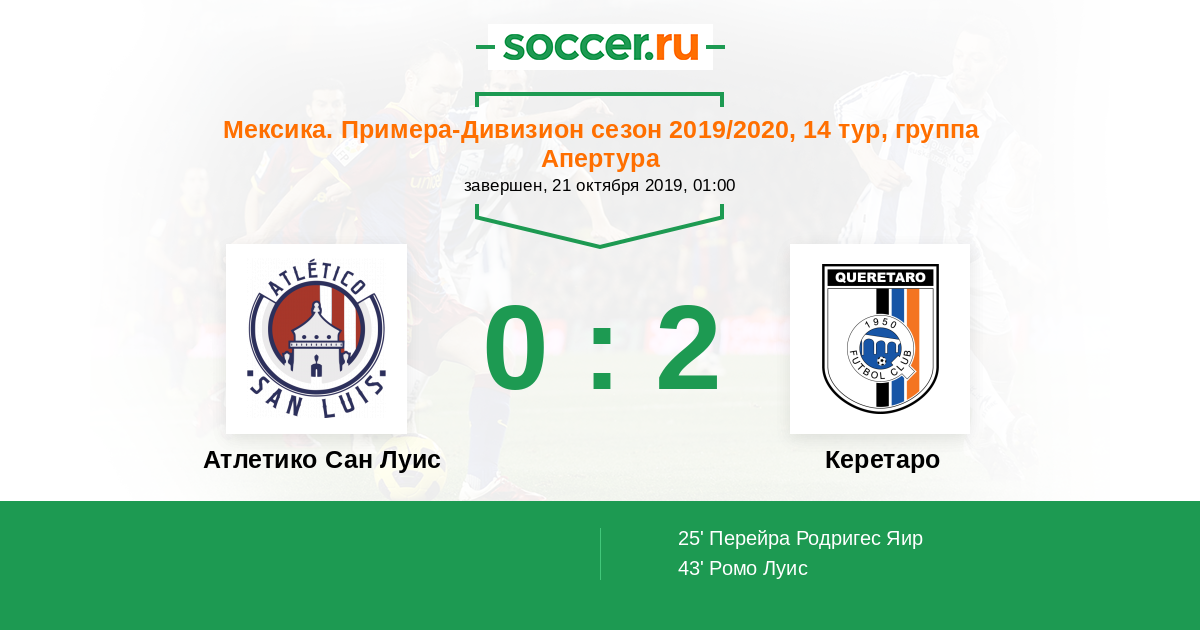 Протокол матча Атлетико Сан Луис против Керетаро