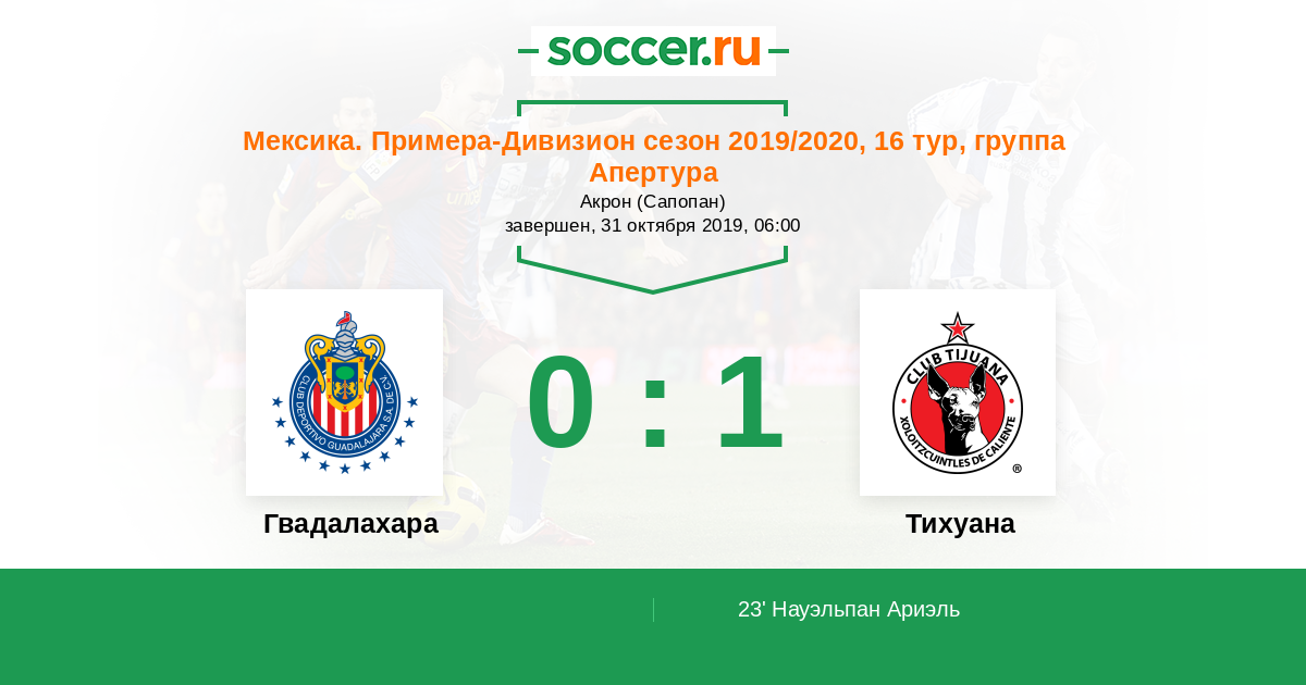 23' (0:1) Науэльпан Ариэль (32) (Боланьос Милер (10))