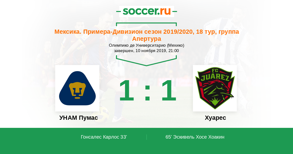 Протокол матча УНАМ Пумас против Хуарес