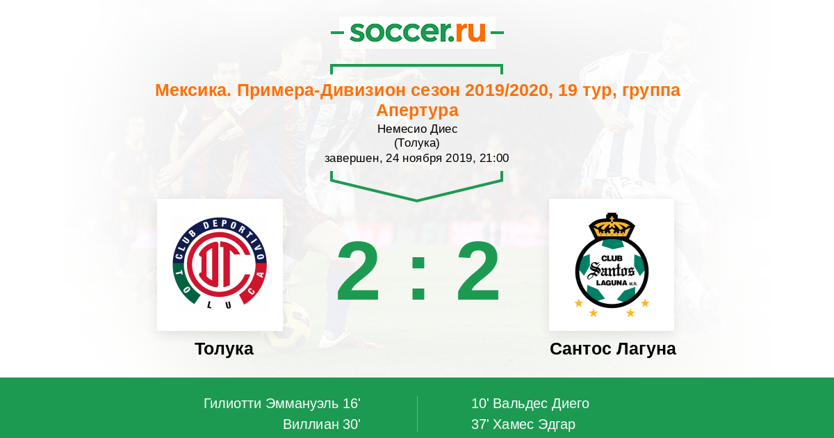 Протокол матча Толука против Сантос Лагуна