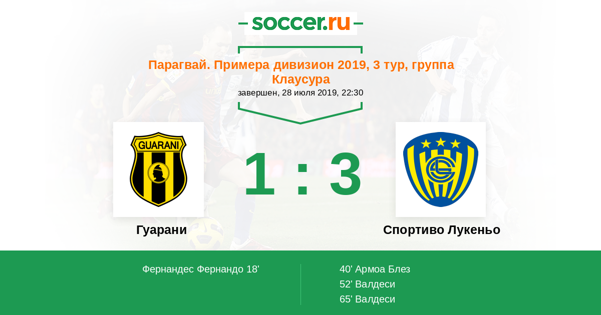 52' (1:2) Валдеси (19) (Сантандер Виллиам (21))