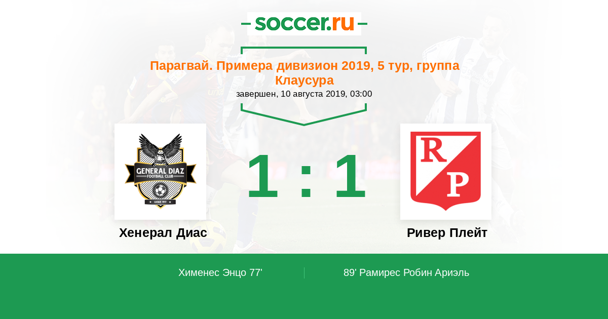 Протокол матча Хенерал Диас против Ривер Плейт