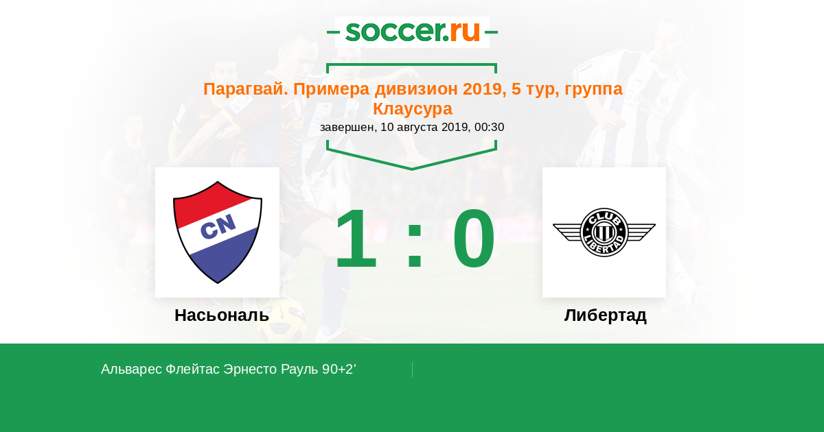 90+2' (1:0) Альварес Флейтас Эрнесто Рауль (18)