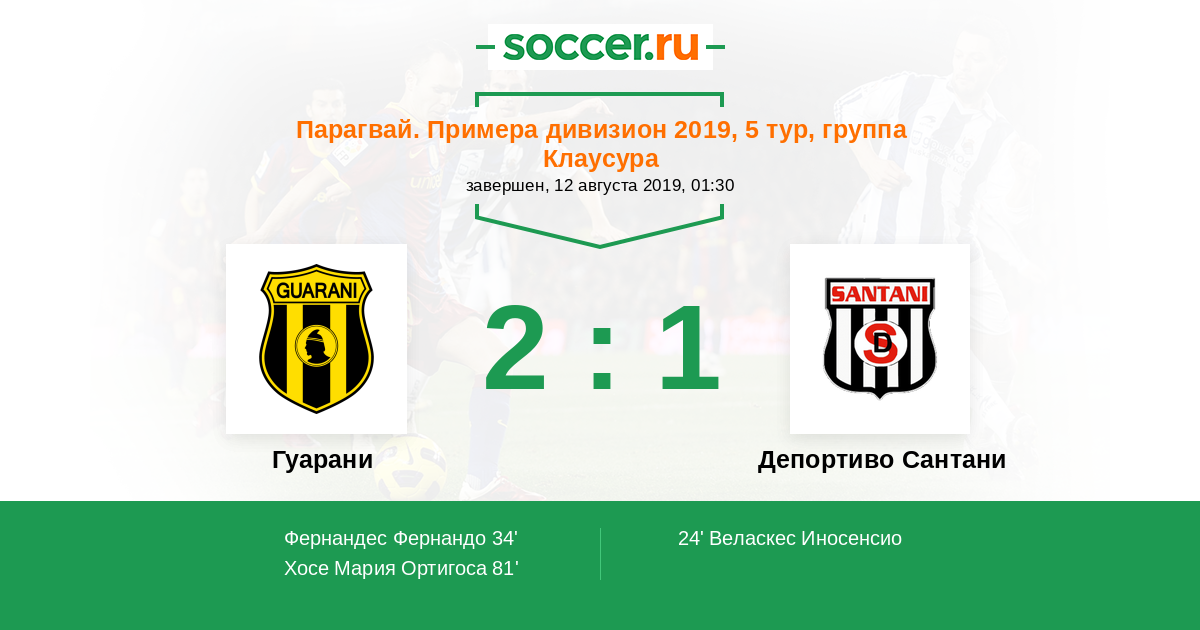 Протокол матча Гуарани против Депортиво Сантани