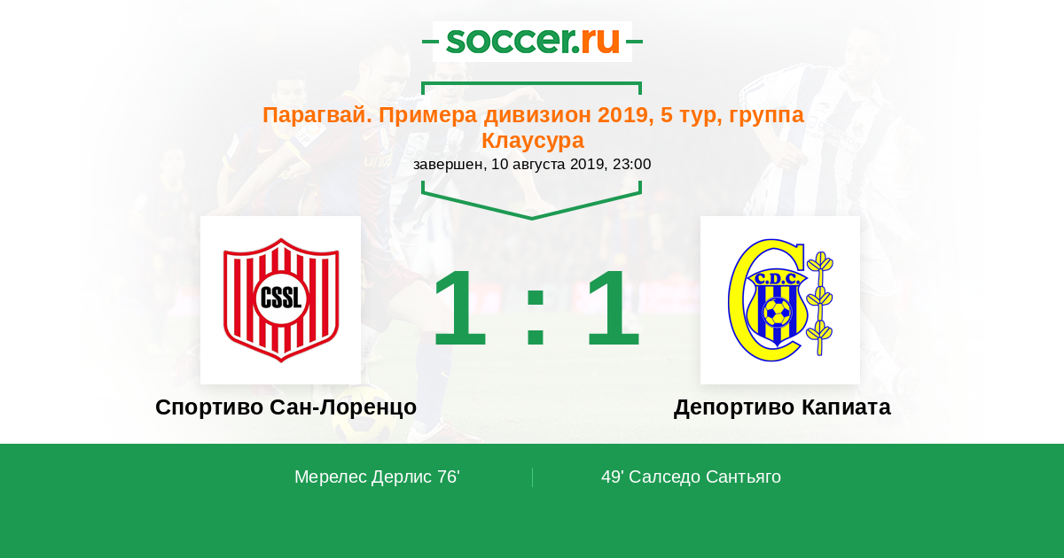 Протокол матча Спортиво Сан-Лоренцо против Депортиво Капиата