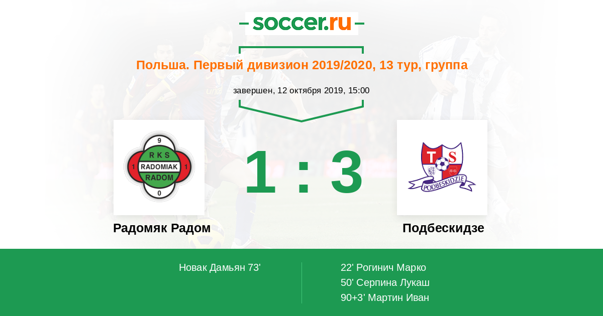 Протокол матча Радомяк Радом против Подбескидзе