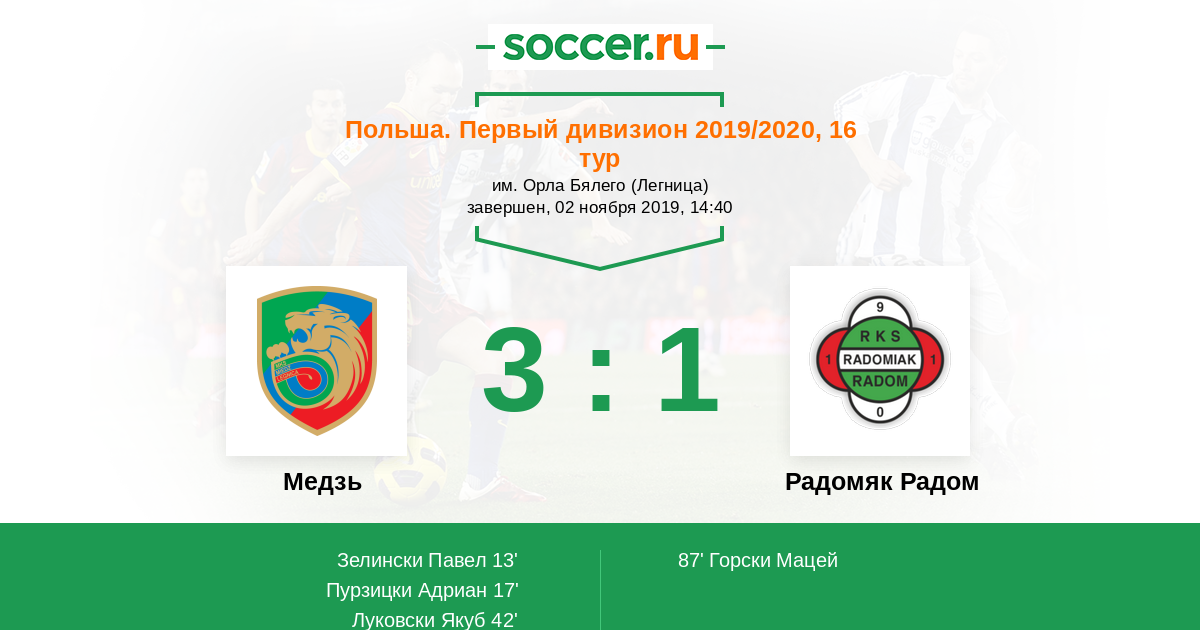 Протокол матча Медзь против Радомяк Радом