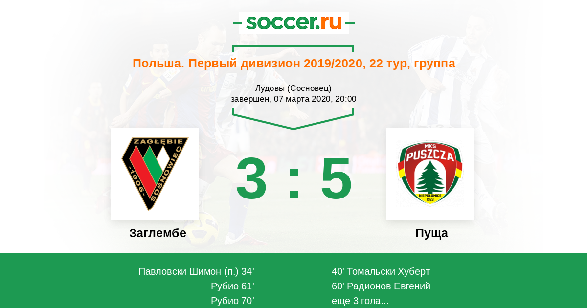 Протокол матча Заглембе против Пуща