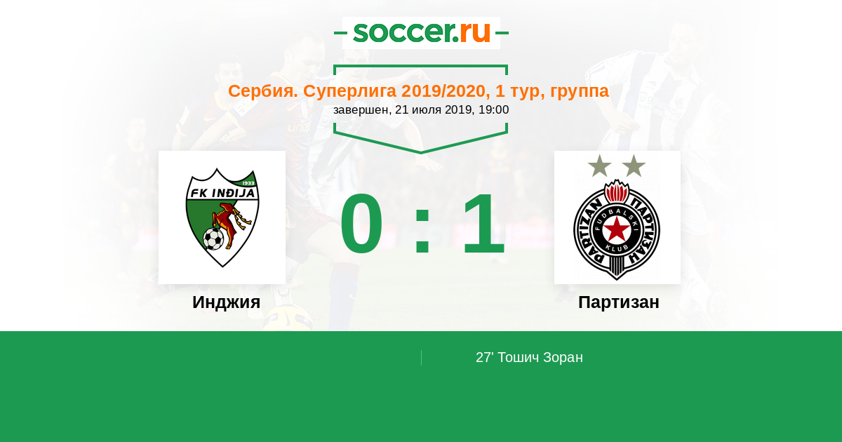 Протокол матча Инджия против Партизан