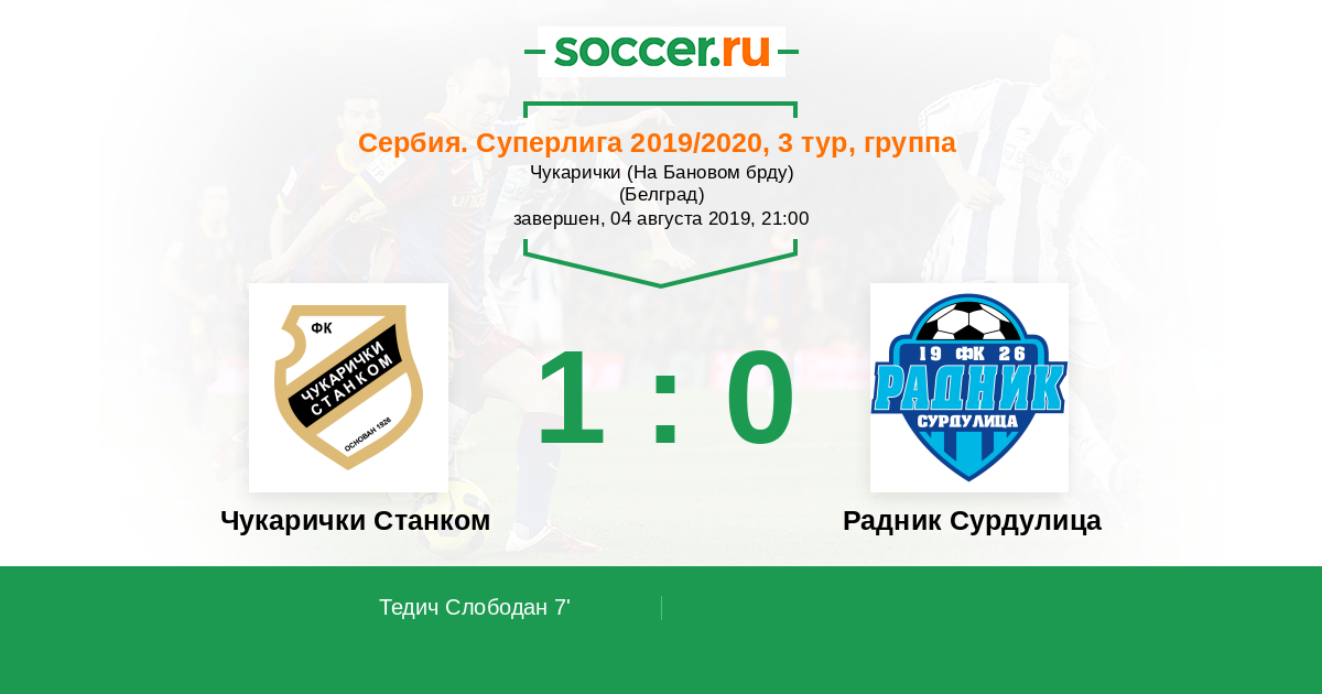 Протокол матча Чукарички Станком против Радник Сурдулица