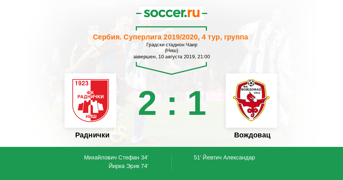 Протокол матча Раднички против Вождовац