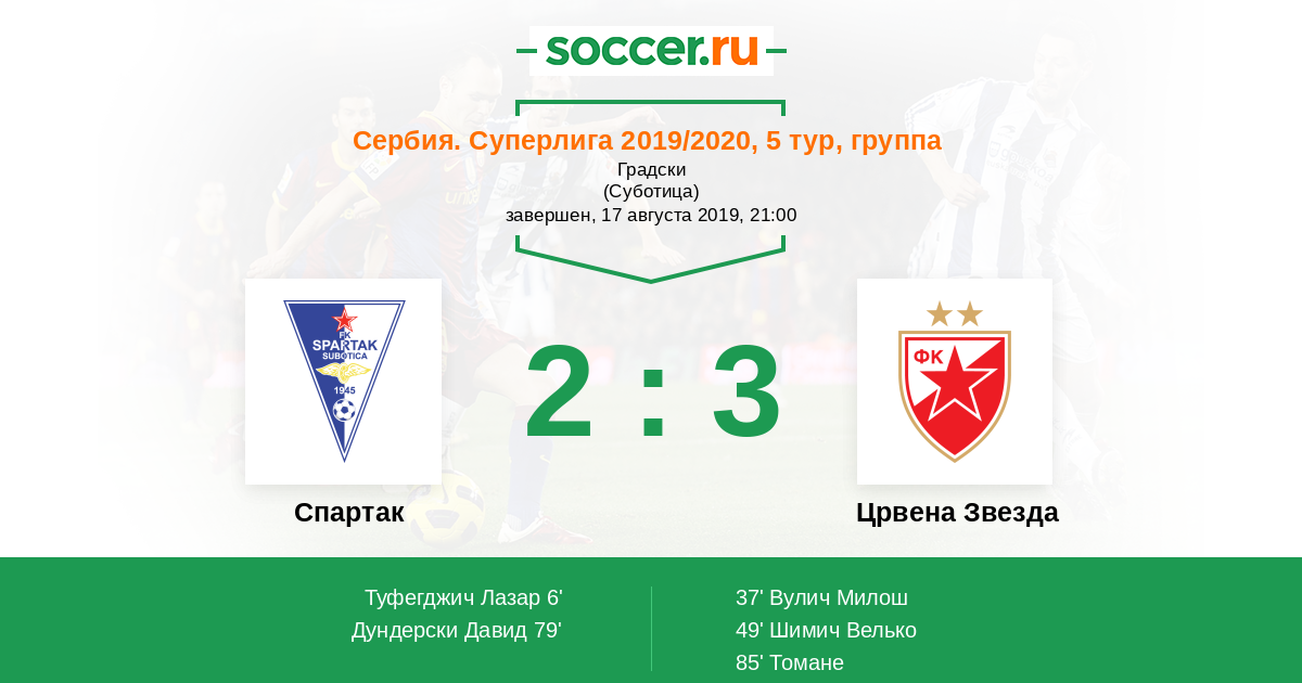 Протокол матча Спартак Суботица против Црвена Звезда