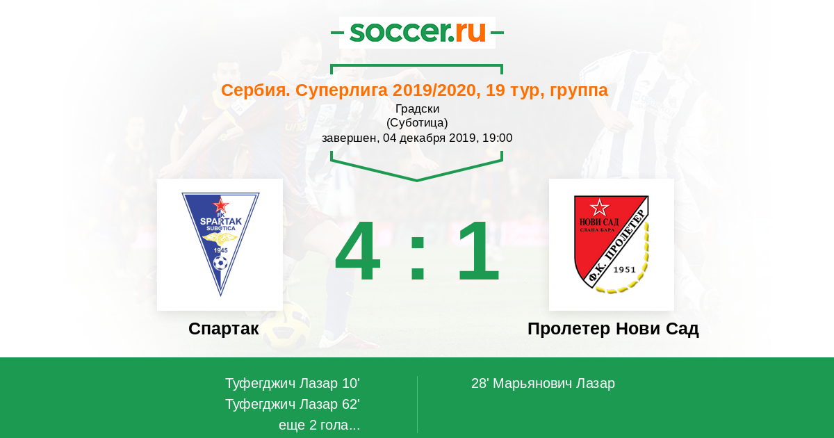 Протокол матча Спартак Суботица против Пролетер Нови Сад